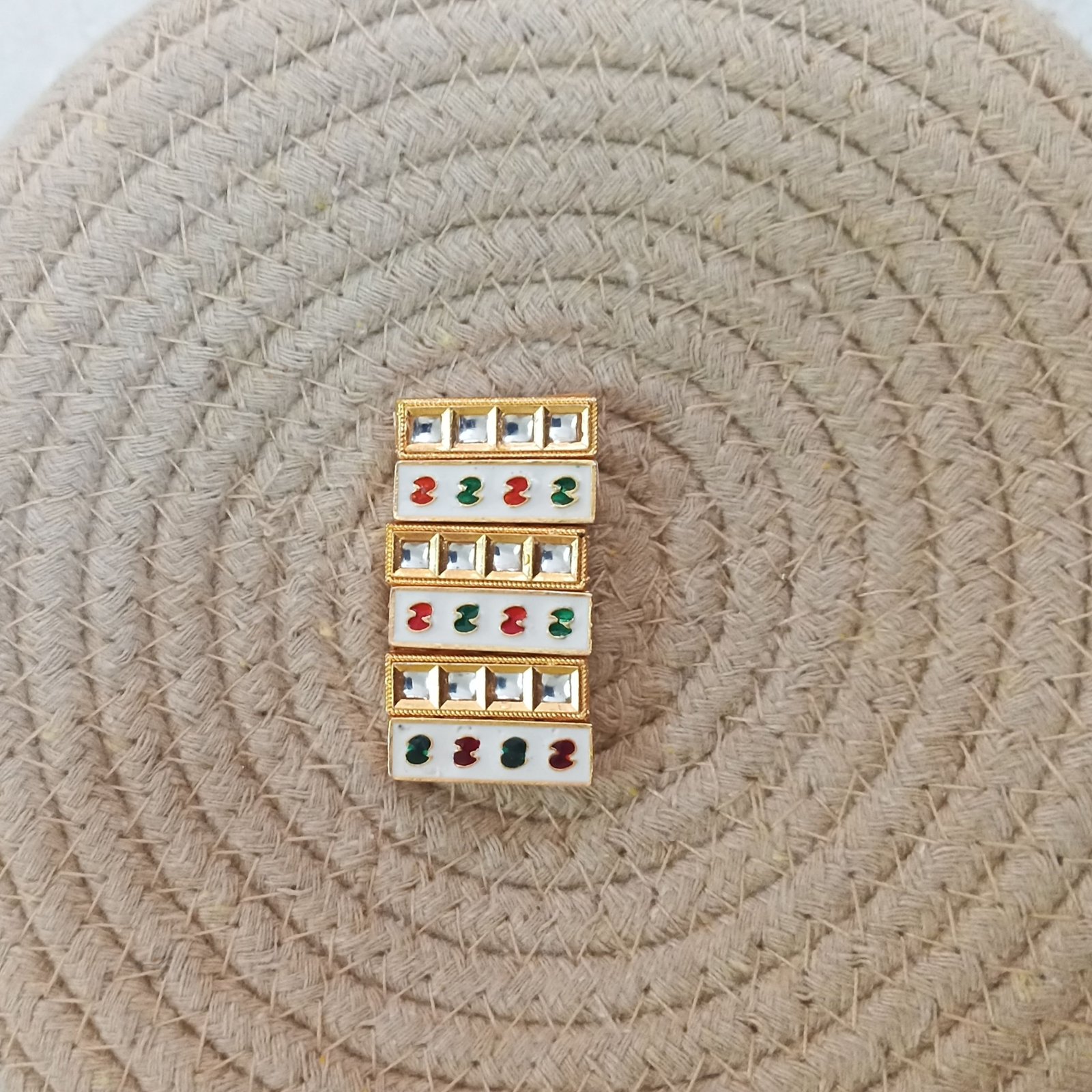 These Premium Back-Meenakari 4whole Kundan Connectors are the perfect blend of traditional elegance and modern versatility. Each rectangular bar features three shimmering, high-quality Kundan stones on the front, while the back is adorned with intricate, colorful Meenakari handwork—offering a stunning finish from every angle.