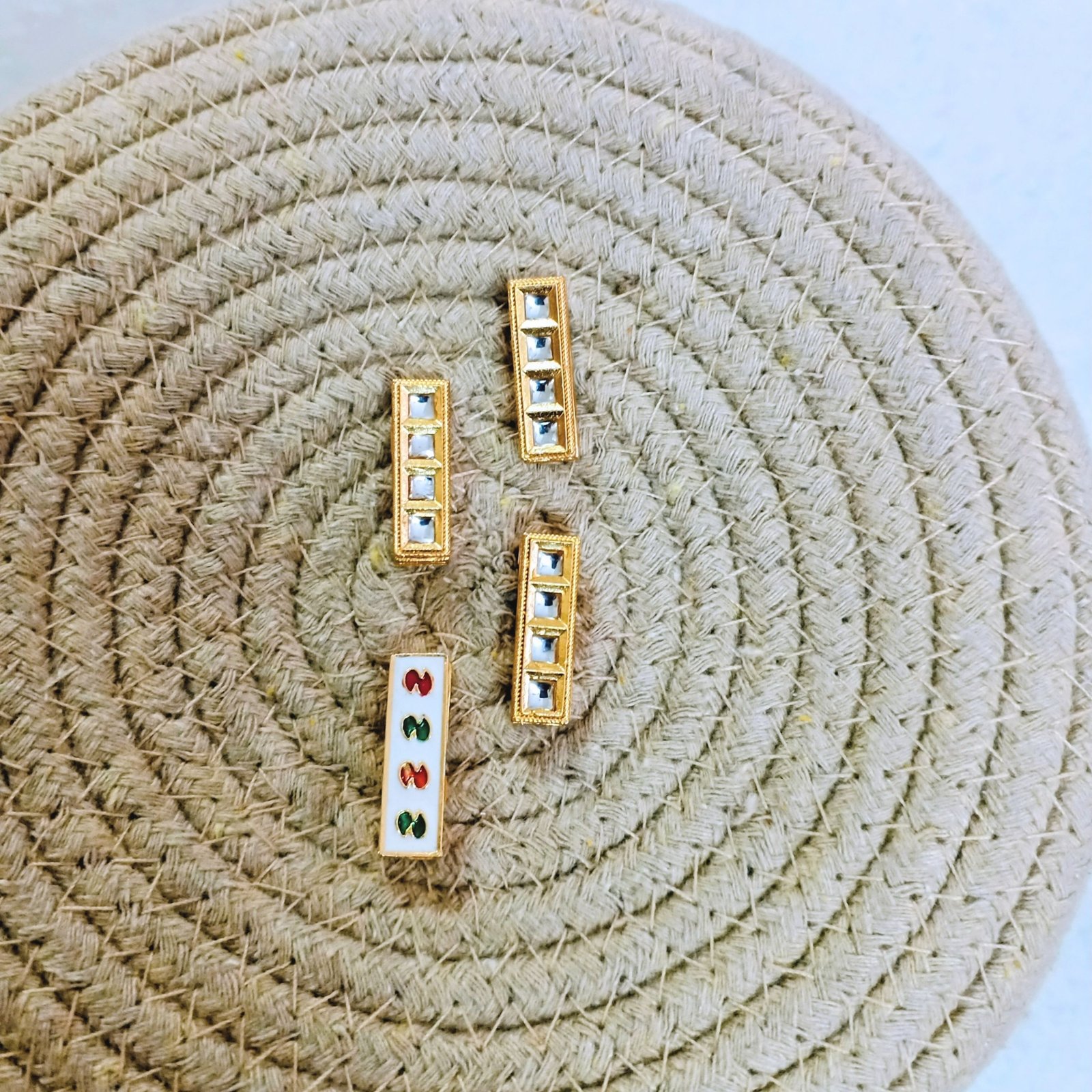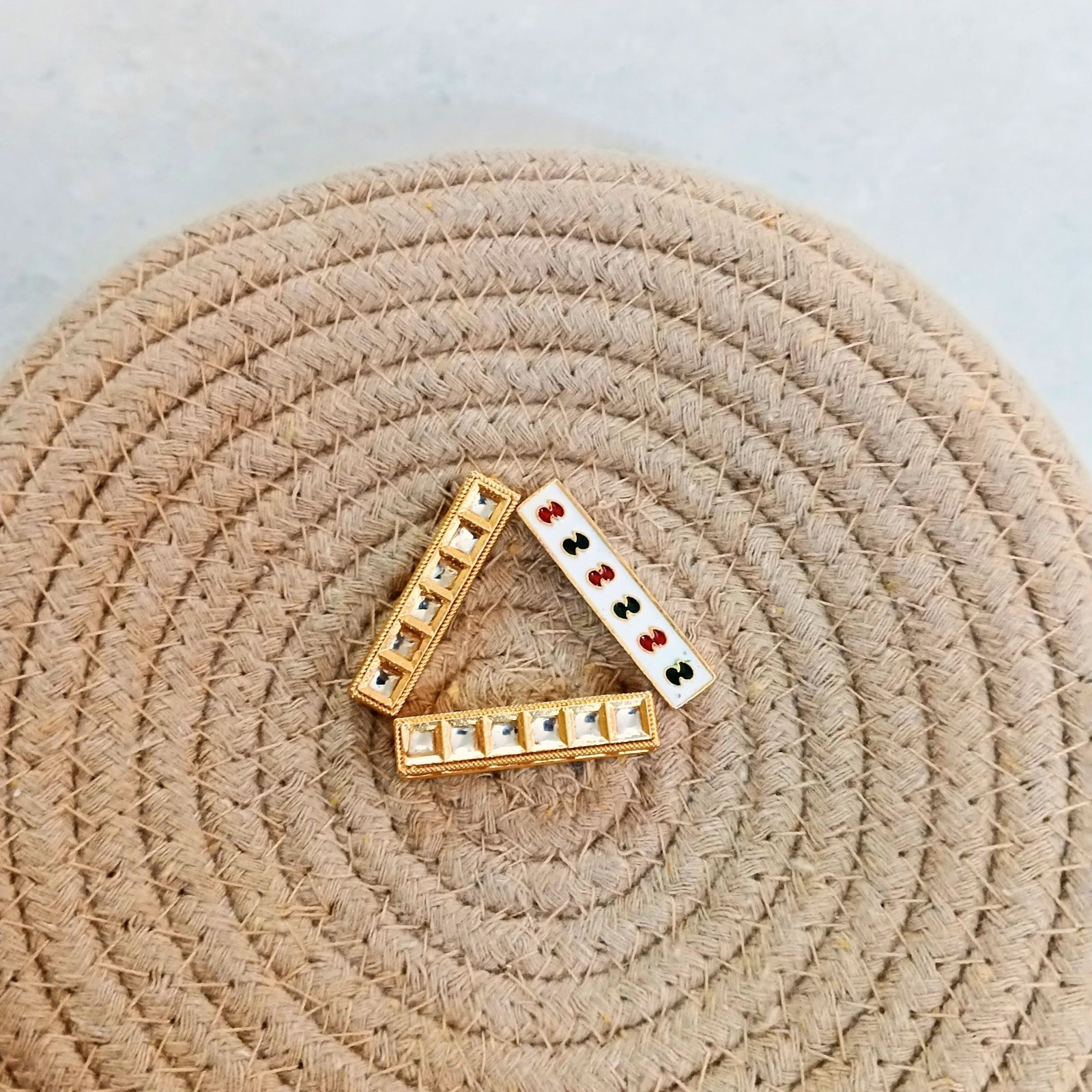These Premium Back-Meenakari 6whole Kundan Connectors are the perfect blend of traditional elegance and modern versatility. Each rectangular bar features three shimmering, high-quality Kundan stones on the front, while the back is adorned with intricate, colorful Meenakari handwork—offering a stunning finish from every angle.