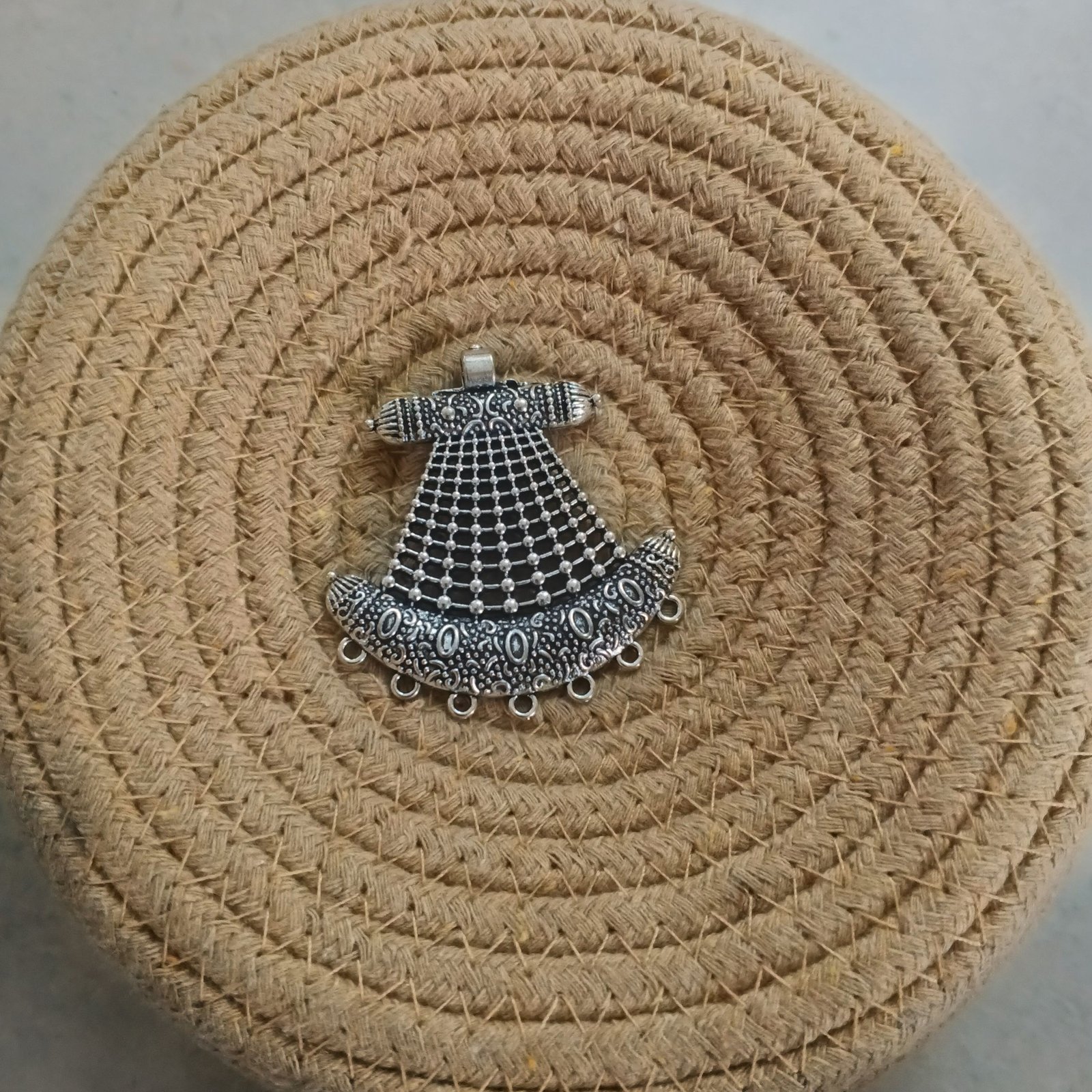 Enhance your jewelry creations with this stunning Oxidized Silver Pendant. Designed as a versatile component for jewelry makers, it features a unique trapezoidal silhouette with intricate mesh-work and embossed floral details.