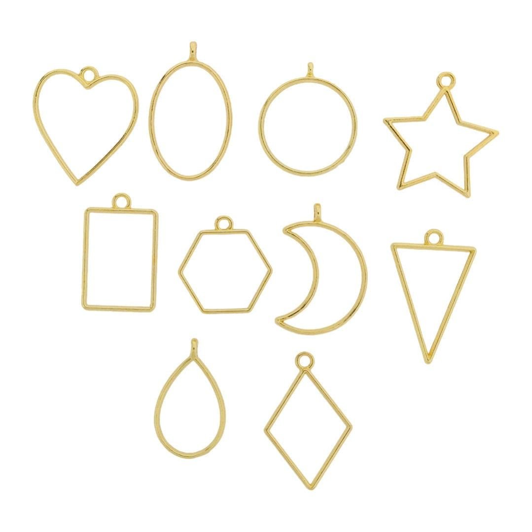 Create stunning resin jewelry and crafts with this versatile set of 10 unique gold bezel frames. Perfect for UV resin, epoxy resin, or clay projects, these lightweight and durable bezels come in a variety of fun shapes, including: