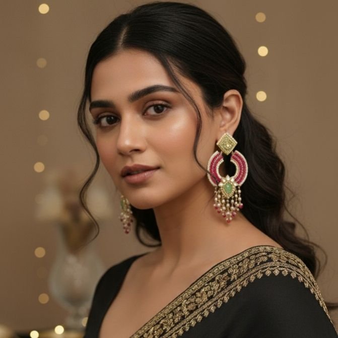 * Design Style: The earrings draw inspiration from traditional Indian jewelry designs, combining kundan or beadwork with delicate dangling elements.