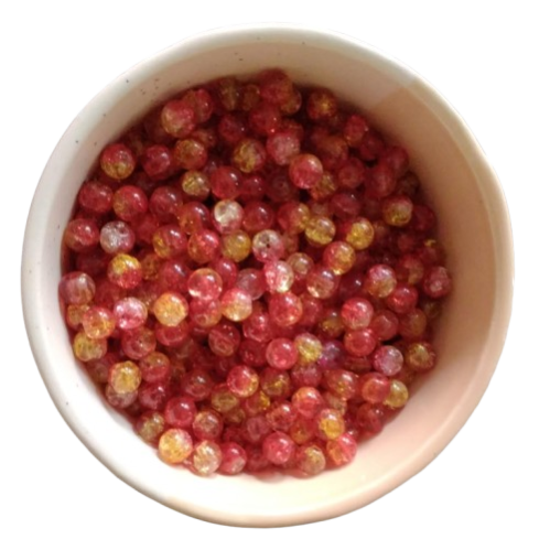 Delicate red orange dual color crackle glass beads featuring a sparkling inner cracked texture. These glossy round beads bring a soft, elegant charm to jewelry designs, crafts, and decorations.